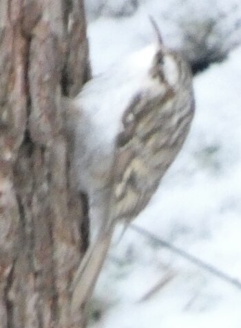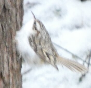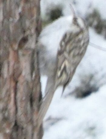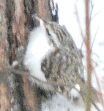 Nyt olisi ollut sellainen tilanne, että olisi voinut olla siellä koskikarapaikalla, jossa aiemmin joulukuussa oli kaksi koskikaraa, koskikara tai useampi? Eilen ei ollut yhtään ainutta käpytikkaa ja kerkesin jo ajatella, että tällaista tilannetta, että ei olisi juuri ollenkaan täällä talvella käpytikkoja ei ole aiemmin ollut. Mutta sitten tänään tulikin havainto kahdesta käpytikasta. Joka tapauksessa, taitaa nyt olla täällä talvella vähemmän käpytikkoja kuin pitkään pitkään aikaan. Siellä ison kuusen linturuokinnalla tosin oli kolme tai neljä käpytikka. Mutta ei esimerkiksi näy linturetkellä ajellessa käpytikkoja tien varsilla ollenkaan kuten aiemmin on tavannut joitakin näkyä? Siis niitä oli kyllä vielä jonkin aikaa sitten, mutta lähtivätkö ne niiden leutojen kelien aikana etelää kohden uudelleen? Tuolla puukiipijälinnulla on jälleen sellainen pykälä siipijuovassa - kuin siitä puuttuisi yksi sulka, vaikka ei puutukaan. Tuossa yhdessä kuvassa se kakkaa. Siksi se on pyrstö tuolla tavoin - eihän se sentään pyrstönsä ja alaperän höyhenten päälle voi kakata. Jostain syystä tänne tulleet hieman keltarintasinitiaisen kaltaiset linnut tykkäävät etsiä ruokansa maasta, avoimelta paikalta? Vähän kuin jotkin hömötiaiset. Se on poikkeuksellista. Sitä näkyi jo eilen. Ne voivat olla jostain avoimemmilta alueilta kotoisin, jossa ne ovat niin oppineet tekemään?? Toivottavasti tulisi jo leudompi keli.![]()