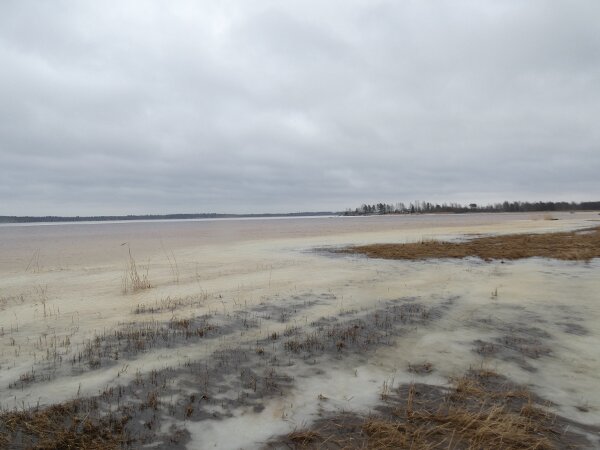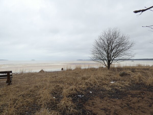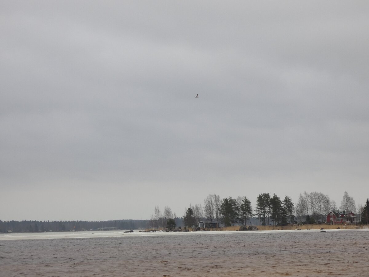 Tuuli kovaa etelästä. Missähän vaiheessa muuttolinnut uskaltautuvat tulemaan tänne asti? Ehkä varminta on tulla sitten, kun routakin alkaa sulamaan. Kaikkialla on nyt pintapuolisesti sulaa. Jossain on hiukan lunta. Siellä niemellä oli sen ympärillä aivan hämmästyttävän laajat sulaveden alueet. Onkohan koskaan aiemmin tapahtunut näin, että niemen koko ympäristö sulaa yhtä aikaa. Keväällä olisi aina hauskempaa, kun aurinko paistaisi ja olisi paljon lintuja.![]()