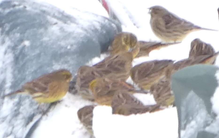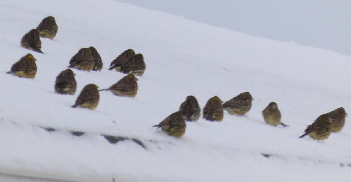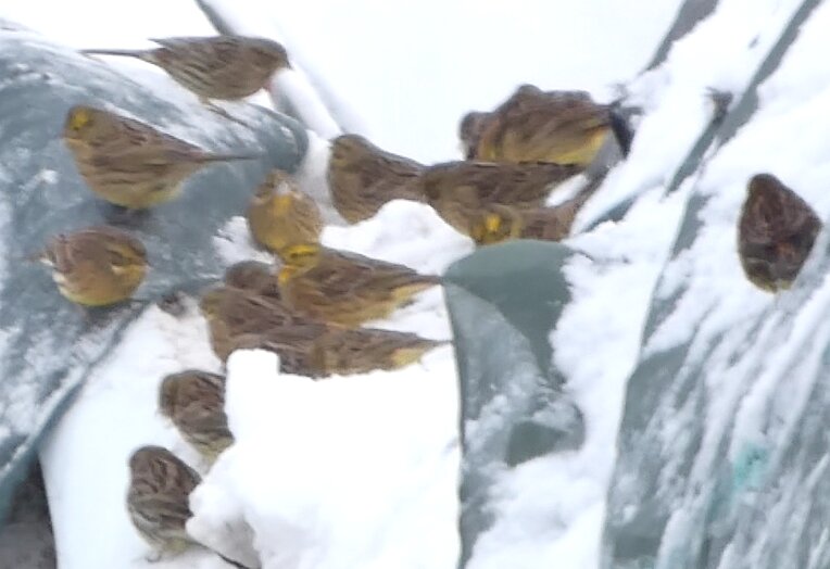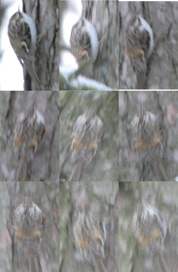 Löytyi se hiiripöllö. Tuulihaukka sai jälleen myyrän. Keltasirkkuparvessa oli ainakin viisi kuin mäntysirkkua, mutta alavatsalla oli hieman keltaista. Yhdellä en voinut sitä todeta. Ja se saattoi olla ihan aitokin mäntysirkku. Sillä oli oranssia kylkien viirutuksessakin. Voisi arvella mäntysirkkukandidaattien suhteellisesta määrästä parven kokoon nähden, että nyt tänne on saapunut kaukaa keltasirkkulintuja ja että mäntysirkun löytäminen on nyt todennäköisempää kuin ennen. Oli puukiipijälintu, jolla näytti takaa päin otetuissa kuvissa ihan kuin siipijuovan yläosa olisi voimakkaasti oranssi. Onkohan se sitä tyyppiä, jonka alaselkä tai yläperän yläosa on hyvin selvästi oranssi. Oranssi väri voi olla selkähöyhenissä?![]()
