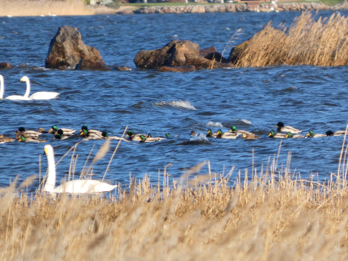 Vielä on hyit-tiltaltteja. Tänään kuului kaksi ja toissa päivänä kolme luontopolulla kävellessä. Muuttotiltaltteja on ollut aina tähän asti yksittäisiä lintuja melkein joka retkellä. Nyt alkaa olla se aika, jolloin ehkä voisi olettaa, että täällä olevat vesilinnut ovat muutolla ja ovat tulleet ehkäpä jopa kaukaa idästä. Hippiäisillä, joita on nyt näkynyt viime aikoina on niin paljon niskassa harmaata väriä, että ovatkohan nekin tulleet kaukaa idästä ehkä.![]()