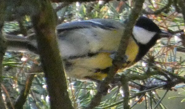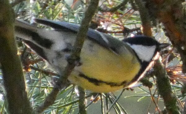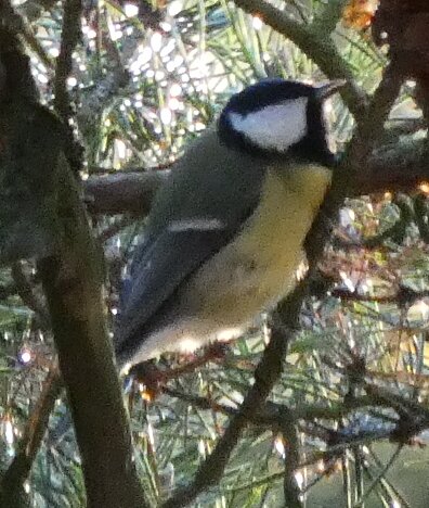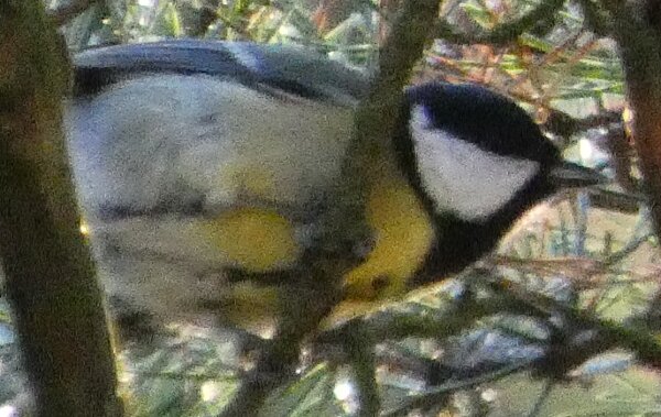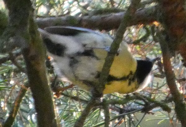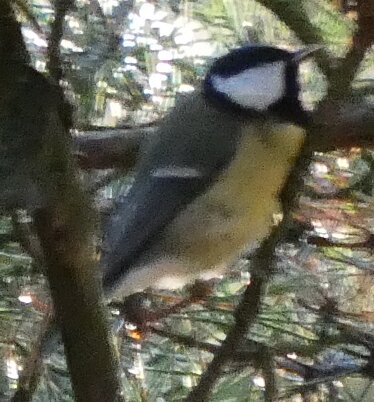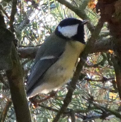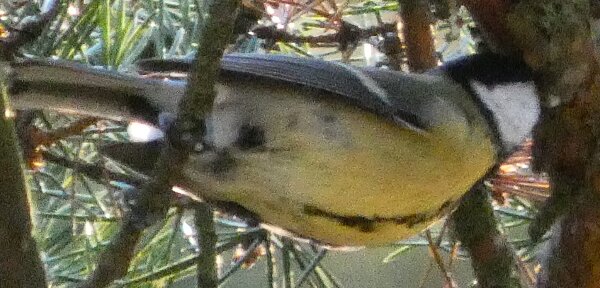 Tällainen talitiainen. Pään on hiukan kuin balkanintiaisen muotoinen? Valkoista on alavatsalla tavallista enemmän ehkä.