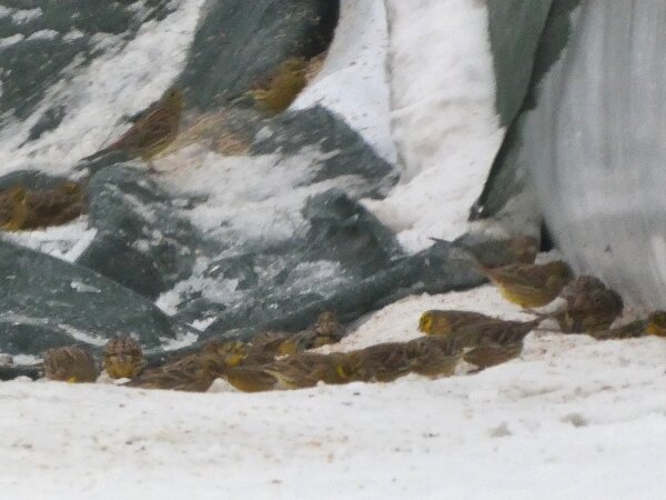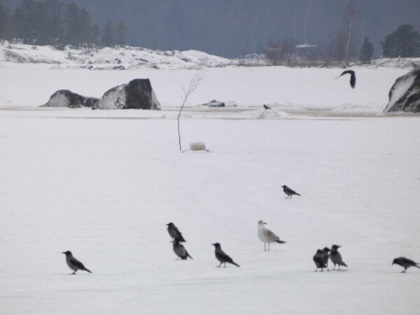 Jo toista päivää +1 astetta lämmintä linturetkellä. Tuli siis pakkasjakson jälkeen lämmintä. Keltasirkkupaikalla oli ilmeisestikin uusi parvi. Ei se sama, tai aivan sama, joka oli aiemmilla kerroilla. Parvi nimittäin saapui juuri paikalle aika korkealla lentäen, kun saavuin. Yksi mahdollinen mäntysirkku kuitenkin näkyi videolla, mutta ei täydellisesti. Tänne on saapunut lokkeja. Kotitarvekalastus on jälleen päässyt vauhtiin ja kotkille ja lokeille on siten ruokaa. Lammen metsäruokinnalla oli kahdeksan punatulkun parvi. Saattoi olla, että siinä mahdollisesti oli vain yksi naaras. Kuitenkin ilmeisesti selvä koirasenemmistö. Naaraat muuttavat lämpimämmille seuduille kuin koiraat, jotka keväällä ensimmäisenä kiiruhtava reviireilleen naaraitaan vastaanottamaan. Punatulkut kyllä pariutuvat, jos mahdollista jo nyt - ainakin koiraiden laulukausi on jo jossain määrin alkanut. Nehän sillä tavalla hiljaisesti hyräilevät? Tässä oli yksitoista tikliä. Vuoden alussa siinä lauloi monesti tikli. Ja nyt niitä oli jälleen tullut takaisin, kun oli tullut lämpimämpää.![]()