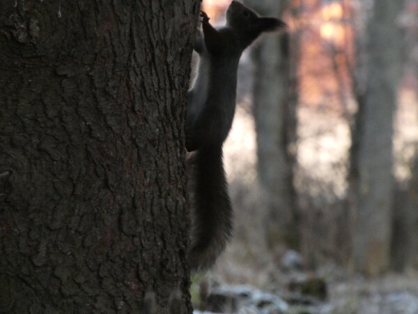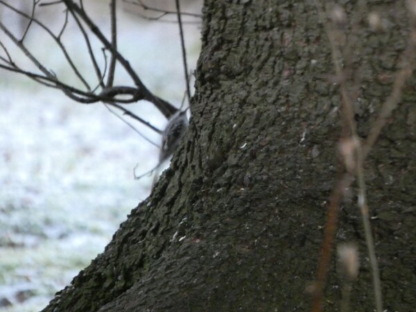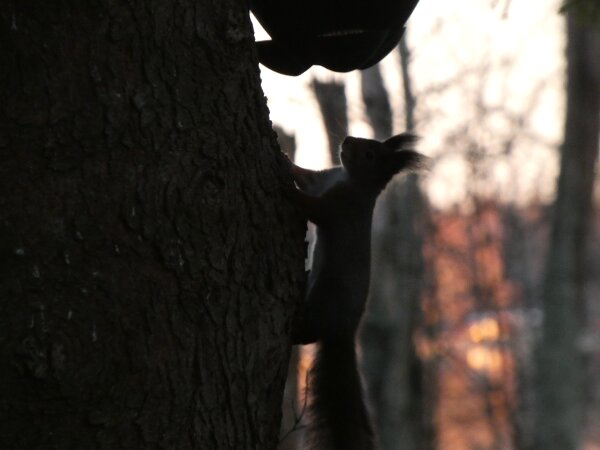 Äänite: palokärjen ääniä Tuollaista on usein palokärjen työskentelyäänet, nokkaisut. Nokkaisut ovat kuin harkittuja ja harvakseltaan. Äänite: ilmeisesti kaksi puukiipijälintua ääntelee toisilleen? Video: orava syö pähkinöitä