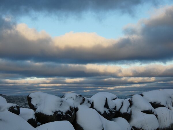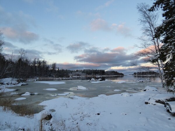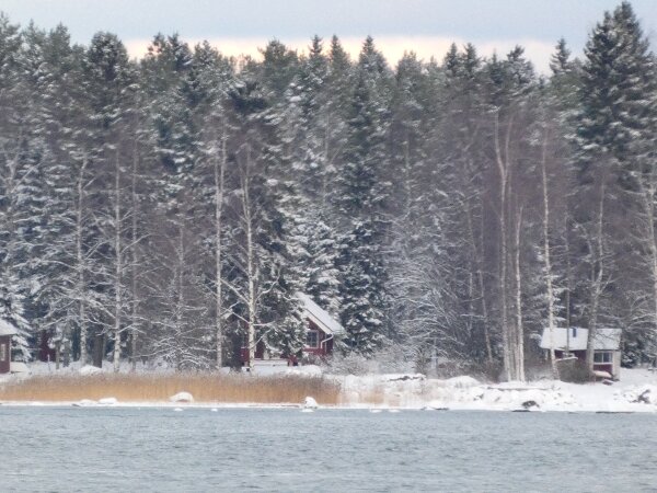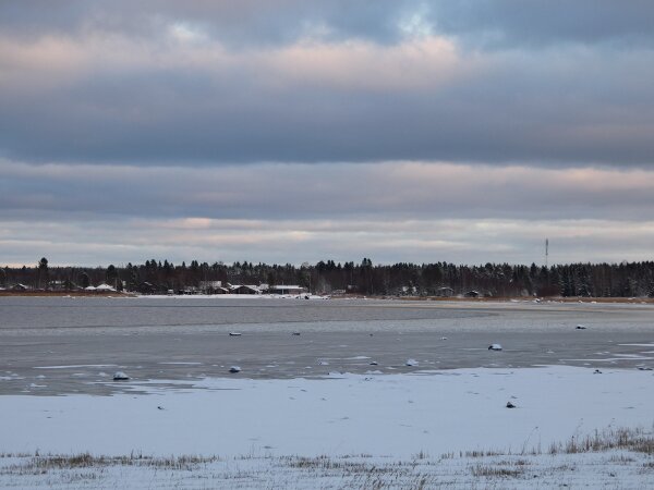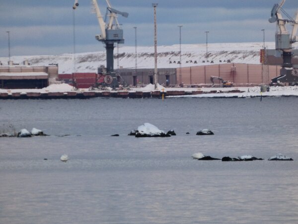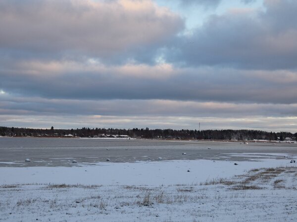 Ei ollut minkäänlaista lokkimuuuttoa pitkän niemen kärjessä, vaikka oli tapahtunut pieni säämuutos: oli nimittäin satanut noin 10 cm lunta. Aika leutoa oli kuitenkin. Kuvissa näkyy neljän parvi vesilintuja, jotka ainakin vauhdista ja määrätietoisuudesta päätellen muuttivat. Arvelin niitä valkoposkivesilinnuiksi. Kalaväylällä oli tuollainen telkkä. Onko sillä tulossa koiraan pään höyhenet - ja siksi se olisi tuon näköinen? Edustalla oli kolme laulujoutsenta. Tilhen ääntelyä kuului jostain. Silloin kun olivat ne kolme keltanokkarastasta, niin silloin kuului laulurastaan ääni. Minnekkä menivät ne kymmenet pikkuvarpuset. Ehkä jollekkin ruokinnalle myöskin. Nykyään näyttäisi oman terassin hyvin vaatimattomalla lintulaudalla käyvän kaksi talitiaista. Mistä olen hieman iloinen, että sentään jotain haluaa syödä minunkin lintulaudalta.![]()