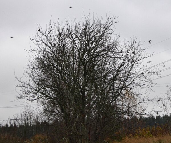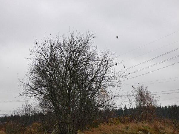 Sateessakin voi ulkoilla ja silloin onkin joskus aika raikas ilma. Pyrstötiaiset muuttivat. Luontopolulla kuului ilmeisesti kolmen parven ääntä. Sitä olen ihmetellyt, että miksi nyt jo pitkään ovat linnut pienempinä parvina ja levittäytyneet isommalle alueelle. Arvelen, että osittain se voisi johtua ruuan määrästä tilavuutta tai pinta-alaa kohden. Kun on kesä ja lämmintä, on ruokaa paljon tilavuutta kohden, jos taas on ollut jo hieman pakkasta, on vähempi ruokaa ja näin ne linnut, jotka tarvitsevat uutta energiaa jatkaakseen muuttoa joutuvat etsimään ruokansa suuremmalta alalta? Lintuja on tietenkin nyt vähemmän. Ne voivat etsiä ruokaa laajalta alueelta häiritsemättä toisiaan.![]()