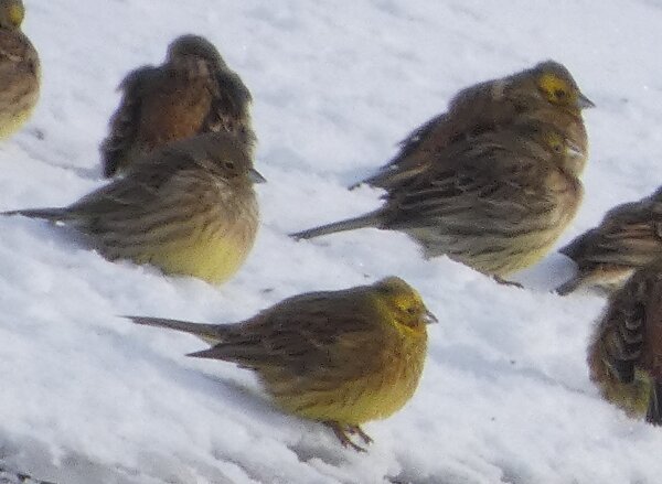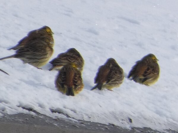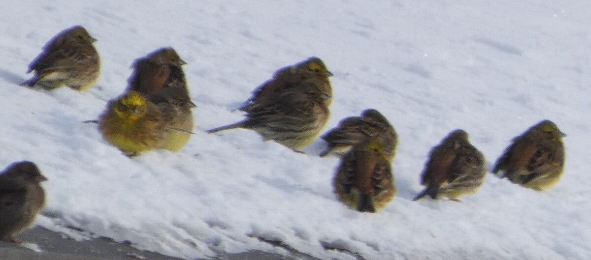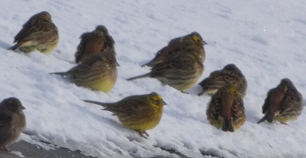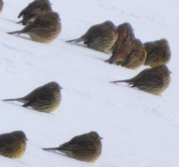 Nyt voi olla vähän kuin sellainen hiljainen jakso ennen kuin kevät sitten joskus vähitellen alkaa. Siis siten, että alkaa tulla kevätmuuttavia lintuja. Aurinko kyllä usein paistaa hienosti ja se lämmittää päivällä paljon, mutta lintuja ei vielä ole saapunut uusia? Monet talvehtineet linnut ovat siirtyneet tai ovat muuttanee käyttäytymistään? Sellainen ajatus tuli tänään, että onko niin, että juuri tämä aika on se, kun paljon lintuja aloittelee kevätmuuttoaan. Täälläkin. Kuka tietää minne osa tiaisista jne. lähtee näihin aikoihin, kun niitä ei näy enää sillä tavoin talviruokinnoilla kuin ennen. Kyllä voi näkyä paljonkin tietenkin vielä, mutta ovatko ne niitä samoja, jotka aiemmin talvehtivat paikalla. Esimerkiksi tänään, kun menin ottamaan siitä mäntysirkkukandidaatista kuvia, niin sitä ei enää parvessa ollutkaan. Parveen oli tullut seitsemän varpusta. Ja keltasirkkulintuja oli enää 54 77 sijasta. Tässäkin tapauksessa jonkinlaista liikettä oli lintujen keskuudessa selvästi tapahtunut. Sen saattoi huomata, nyt kun oli parvessa vain varpusia ja keltasirkkulintuja, että kuinka kauniisti varpunen ääntelee. Harmi, että varpunen ei ole yhtä yleinen kuin aiemmin. Varpunen voi äännellä hyvin kauniistikin. Löytyi sieltä peltoaukealta, jossa aiemmin oli metsäpeuroja, niiden aivan tuore synnös, jossa ne olivat kaivaneet heinää syödäkseen lumen alta. Ne ovat hyvin tehokkaita. Niiden ruokailu oli paljastanut laajoja heinäalueita aika hyvin. Tai ainakin paremmin kuin muiden, esimerkiksi metsäkauriiden ruokailu tekee. Isolla metsäpeurauroksella on hämmästyttävän kokoinen jalka. Se on kuin jonkinlainen lumikenkäjuttu, kun se levittää sen. Jälki on ehkä samaa luokkaa kuin ison hirviuroksen jälki. Metsäpeuralla onkin oikein kuin lumikengät. Voiko keltasirkkulintujen kuin päävärityksestä päätellä kuinka kaukaa idästä ne ovat mahdollisesti tulossa?![]()