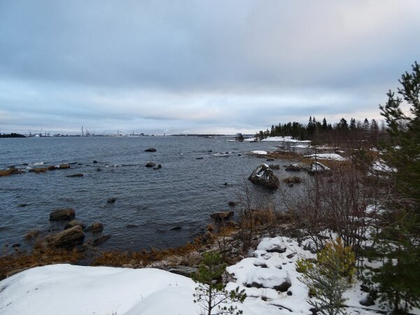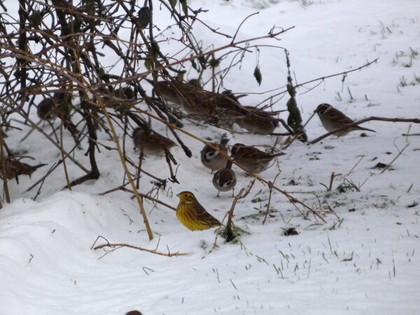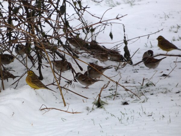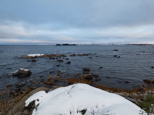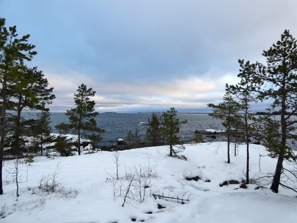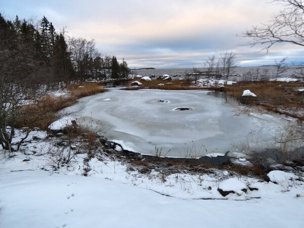 Pidin mahdollisena, että eilinen radikaali muutos rannikolla olisi mahdollisesti johtanut edes pieneen muuttoaaltoon etelään. En tiedä sitten olivatko rannikot saman tien taas sulaneet: sehän oli vain tuulen tuomaa sohjoa eilen; ja sen vuoksi olivat laulujoutsenet ja lokit jääneet vielä ruokailemaan paikoilleen, kun ei rannikolla näkynyt oikein mitään. Tuleekohan vielä arktisia vesilintuja? Olin siellä pikkusaarten lähellä vähän kävelemässä. Siellä asustaa valkohäntäkauris. Sen jälkiä näkyi paljon. Toinen alueen asukas on saukko. Rannan tuntumassa oli paljon sen jälkiä. Pikkusaaret ja rannat ovat hyviä paikkoja saukon kalastella? Hippiäisiä oli joitakin rannan tuntumassa. Kun siinä on lämpimämpää?![]()