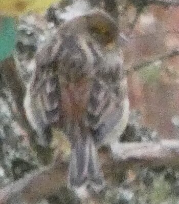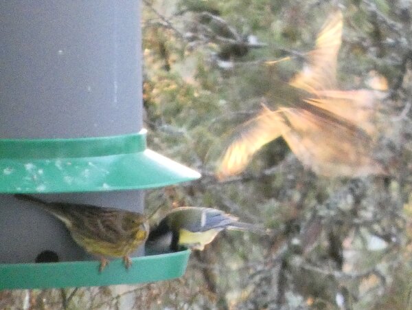 Saaren linturuokinnalle oli ilmestynyt toinenkin oranssipääkerttu. Tällä kertaa samalla lintulaudalla ruokailikin koiraspukuinen oranssipääkerttu. Siis mahdollisesti ruokinnalla käykin nyt ainakin kaksi oranssipääkerttua. Yksi viherpeippo oli ilmestynyt paikalle sekä oli ilmeisesti enempi talitiaisia. Ja tänään oli kaksi töyhtötiaista. Eilen oli yksi.![]()