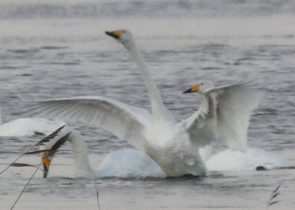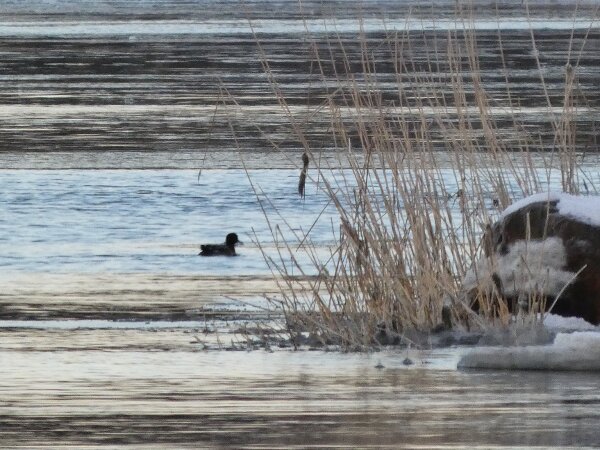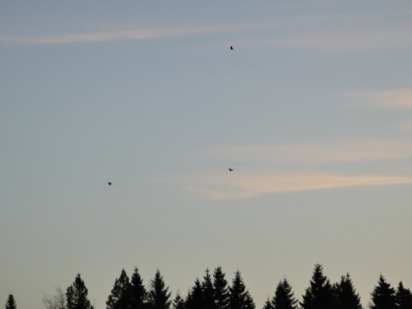Varispari tähysti isoissa kuusissa joutsenpaikan reunalla. Yhtäkkiä ne alkoivat raakkua ärtyneesti ja nousivat lentoon. Ajattelin, että tuleeko sieltä kanahaukka tai jotain ja että paikalla onkin vartijalintuja, jotka suojelevat vesilintuja, että kanahaukka ei voi niitä salassa väijyä. Mutta sieltä saapuikin kaksi varisparia? Ehkä juuri tästä syystäkin haapanat vaistomaisesti ruokailevat varisparin tähystyspaikan vierellä. Ja syntyi jonkinlainen ilmataistelu. Tämä mielestäni todisti, että varisparit pitävät reviiriä talvellakin ja suojelevat sitä toisilta varispareilta. Kyse on siis, voi kai sanoa, ruokailureviireistä. Mutta ehkäpä varisparit ovat talvellakin omalla pesimäreviirillään. Ainakin kahdessa paikassa vaikuttaa siltä rannikolla. Suurin osa variksista (nuorista?) muuttaa etelään, mutta hyvillä reviireillä olevat pesivät parit talvehtivat reviirillään? Jotkin varikset ovat naakka- ja varisparvissa talvella.