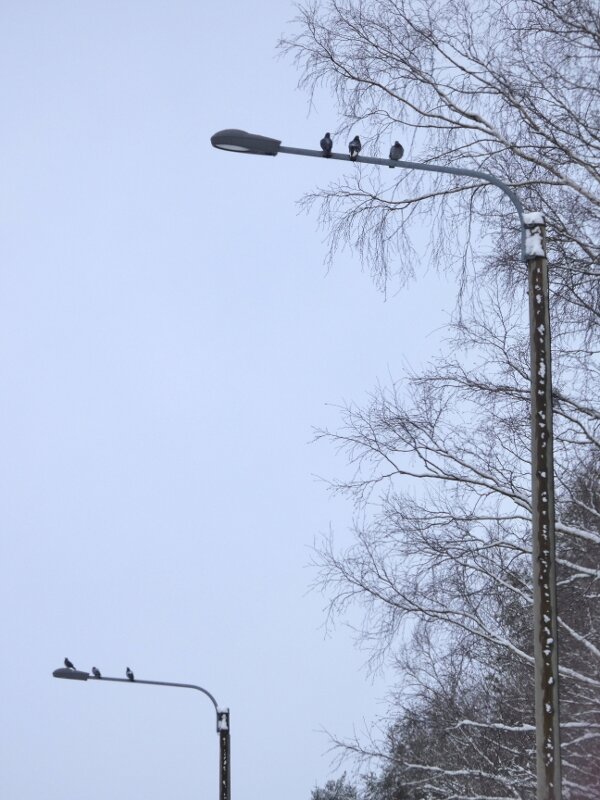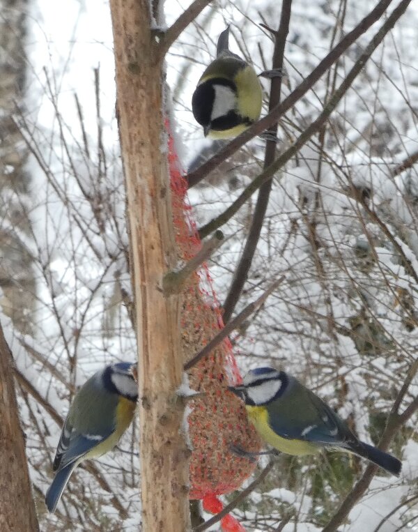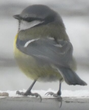 Pitkästä pitkästä aikaa meni tänään lämpimän puolelle - oli +1 astetta lämmintä. Ja se näkyi ainakin terassilla. Keltarintasinitiainen kävi ehkä kymmenen kertaa kurkistelemassa kirjosiepon pönttöön. En tiedä onko se sama lintu kuin tuo kuvissa. Kerran näkyi siinä kolme sinitiaista ja talitiainen. Sinitiainen kävi myös katsastamassa sen pikkupöntön. Kun avasin kaihtimet, niin se oli siinä ihan kymmenien senttien päässä pöntön vierellä. Kerran talvella näin kun sinitiainen lensi siitä sen sinitiaispöntön kohdalta. On ehkä mahdollista, että sinitiainen olisi lämmitellyt siellä pöntössä talvella. Sitten hetken päästä tuli ihme kyllä lintulaudalle kaksi naakkaa. Ehkä pari kun ne olivat niin sopuisasti lähekkäin. Ne söivät jonkin aikaa jyviä lintulaudalta. Linturetkellä saattoi ehkä huomata lintujen vilkkauden. Pieni naakkaparvi lensi korkealla ja kovaa. Arvelin ensin, että onko ne kesykyyhkyjä. Mutta ne olivatkin naakkoja.![]()