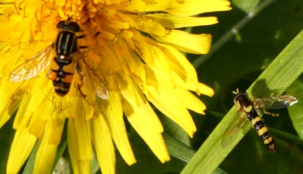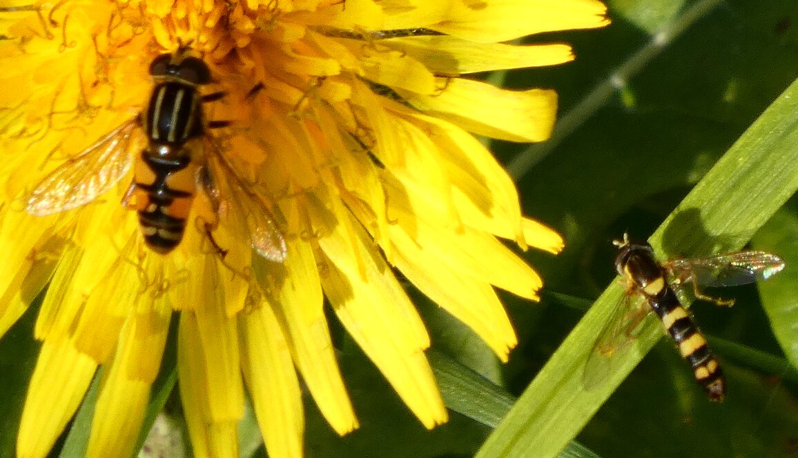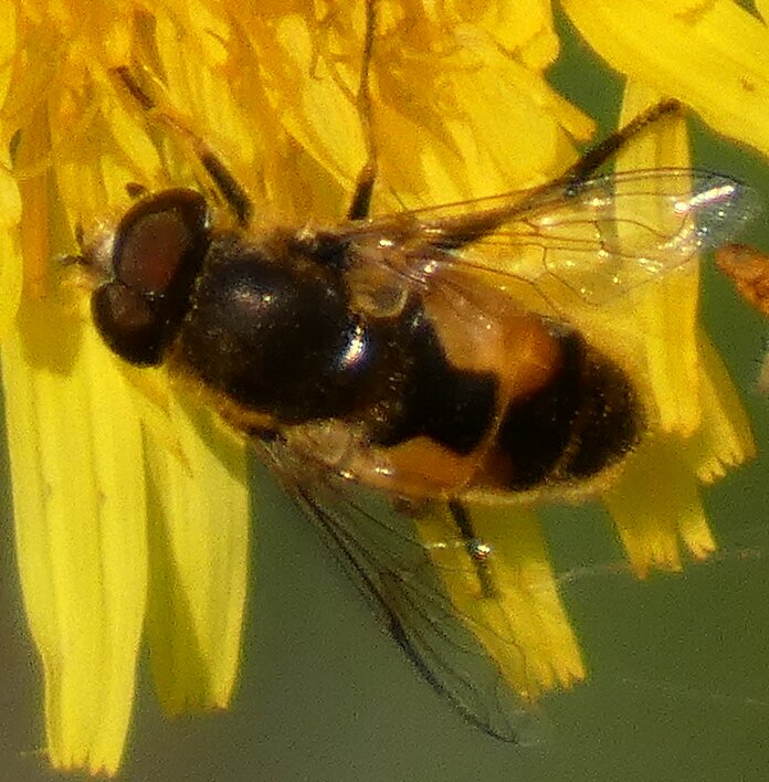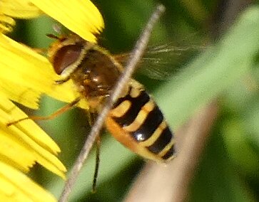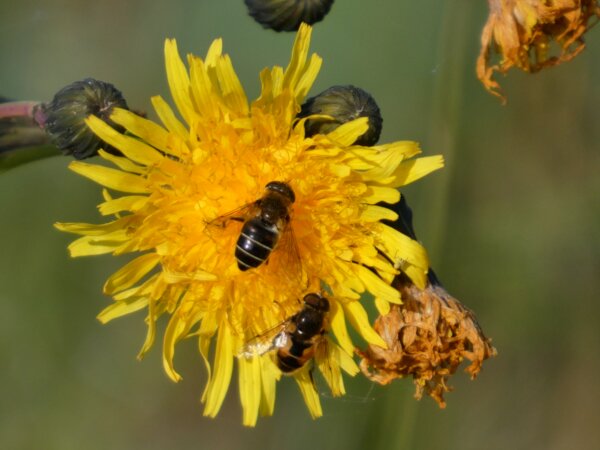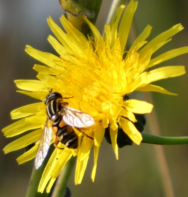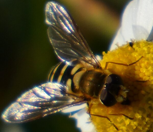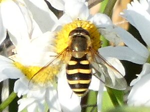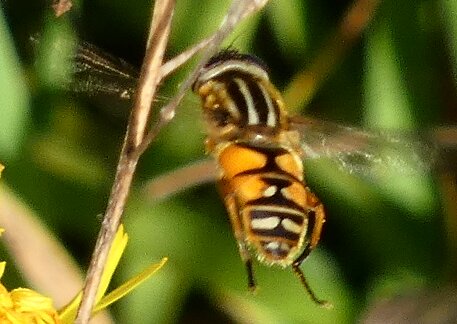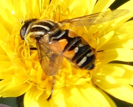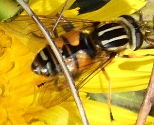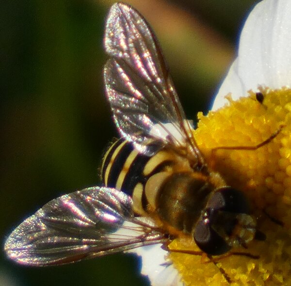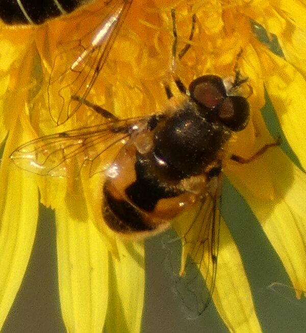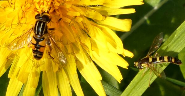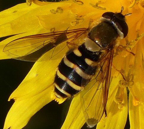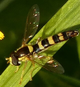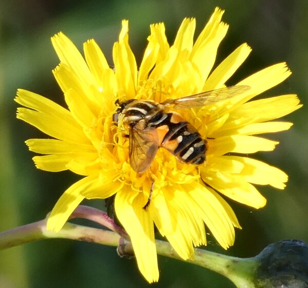 Video: keltaraitainen kukkakärpänen kukassa