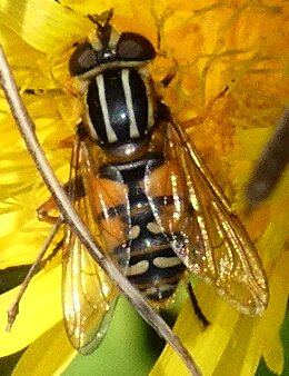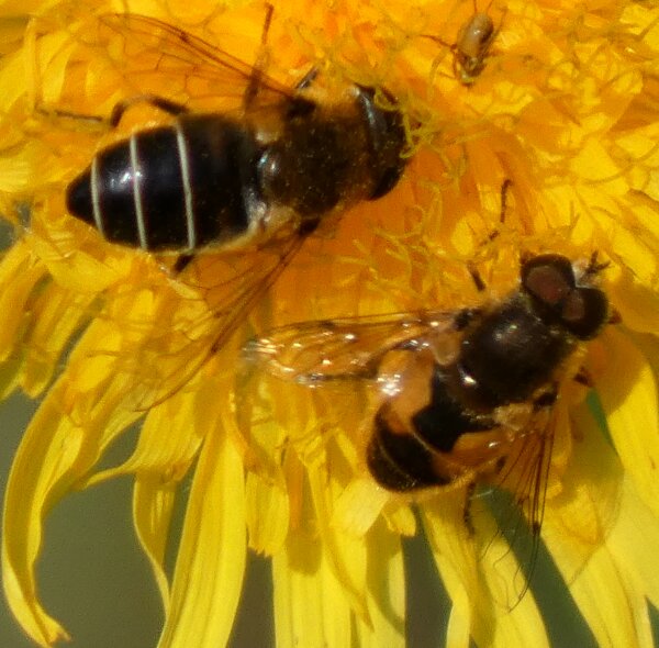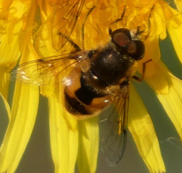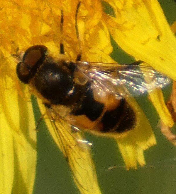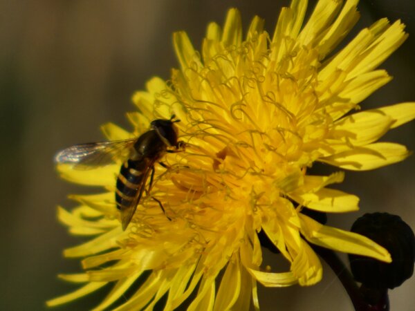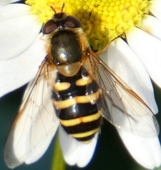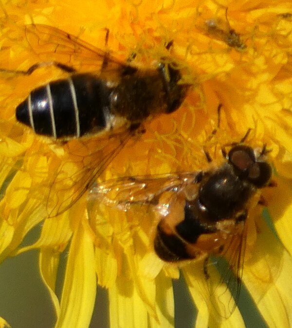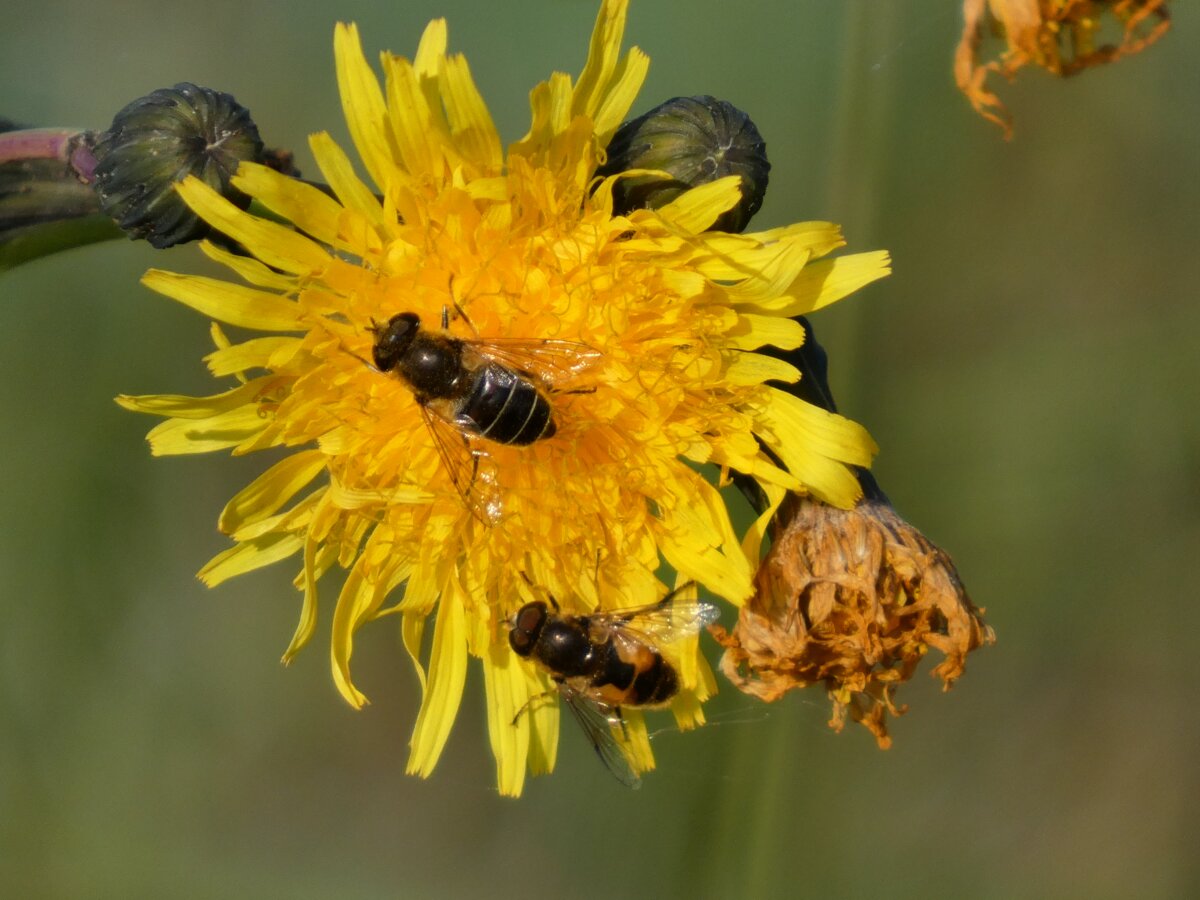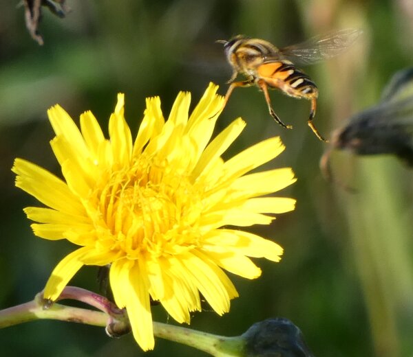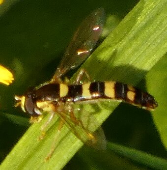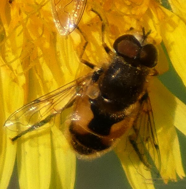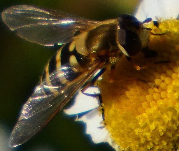 Video: keltaraitainen kukkakärpänen kukassa