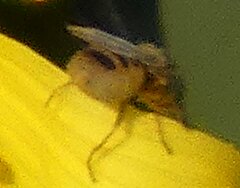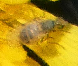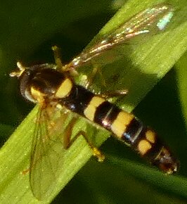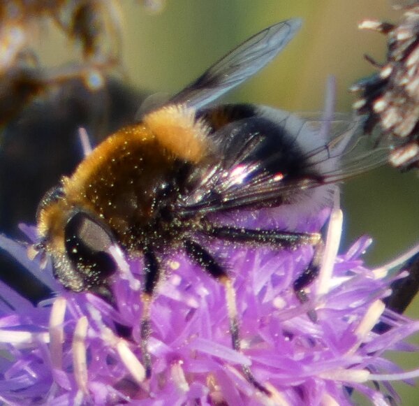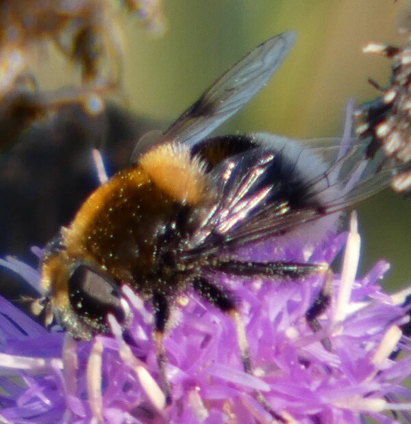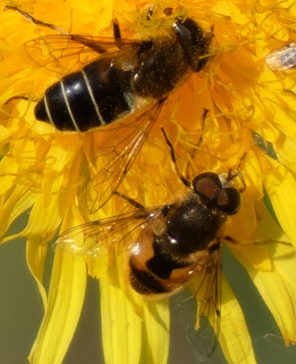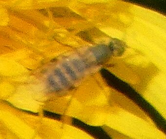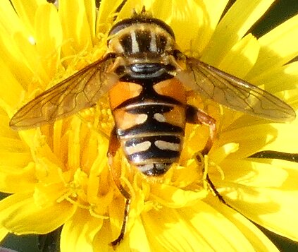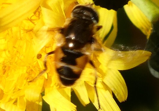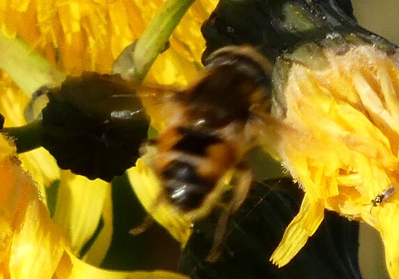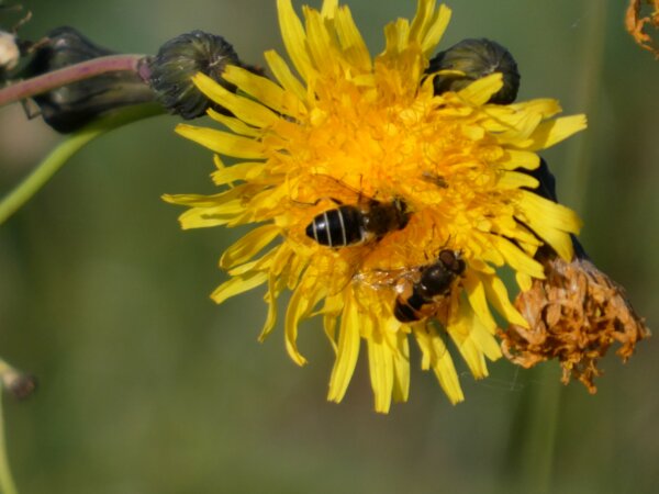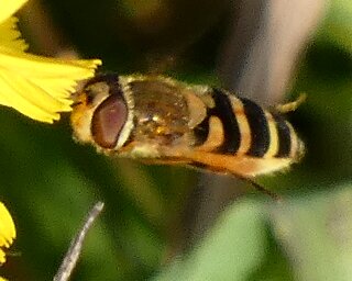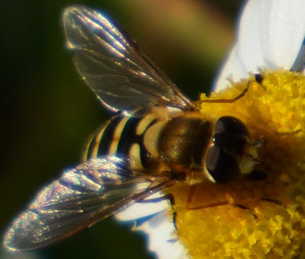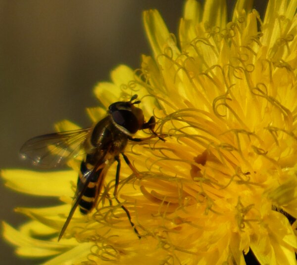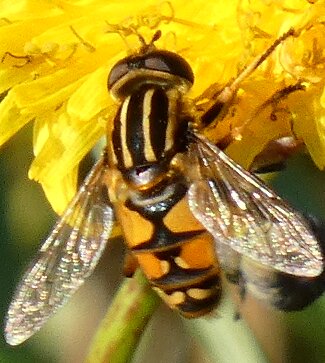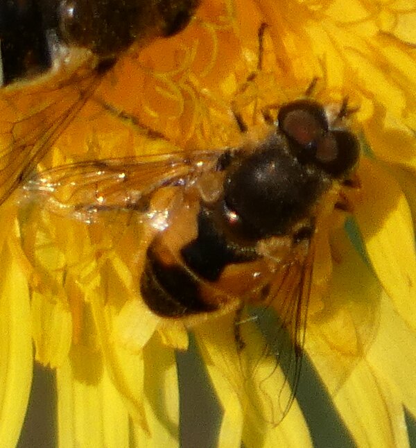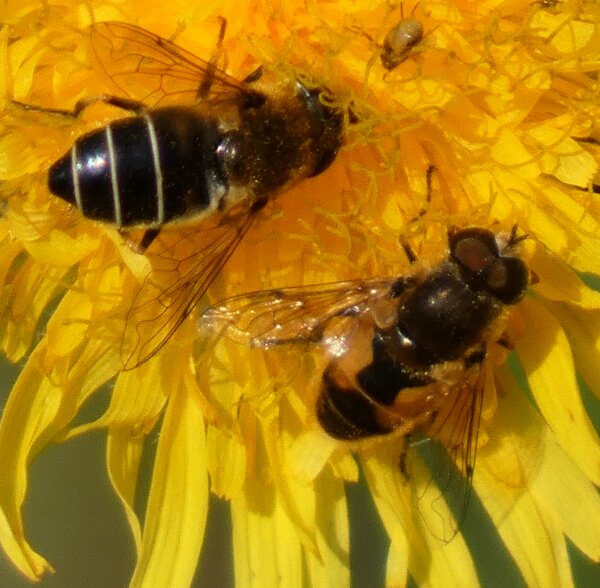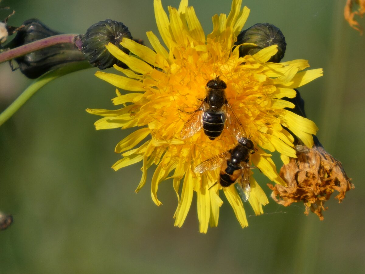 Video: keltaraitainen kukkakärpänen kukassa