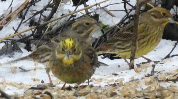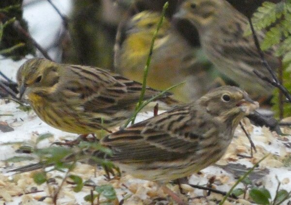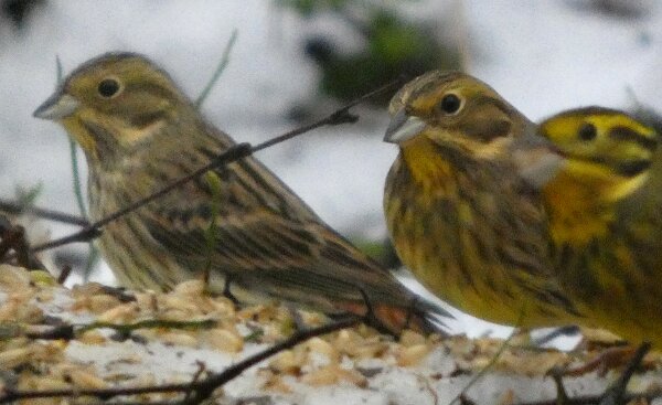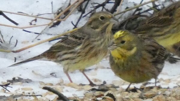 Lumi suli, kun oli yhtäkkiä kuusi astetta lämmintä. Monin paikoin olivat pellot ihan vihreenä. Kävin etelämmässä linturetkellä. Siellä näytti, että oli rannikollakin ihan sulaa. Siellä näkyi lokkeja, mitä ei ole täälläpäin vähään aikaan näkynyt. Telkkäparvi oli ja joutsenet ihan hieman liikehtivät, lentelivät. Linturuokinnalla oli tuollainen keltanokkarastas. Nokan perusteella se voisi olla ehkä jonkinlainen sinihohtorastasnuori. Toisella monitorilla näkyy hieman sinistä sillä siivillä ja uloimmassa pyrstösulassa. Ei näy kuin kolmessa kuvassa sinistä. Ainakin lintu oli hyvin kesy. Tuollaisia keltasirkkulintuja oli. Pari oli, jotka ehkä ovat lähempää mäntysirkkujen esiintymisalueita tulossa? Tarkoittaako se, että on paljon harmaata päässä ja niskassa, rinnalla, että lintu olisi tulossa jostain idästä? Mäntysirkkunaarailla ja nuorilla koiraillakin on paljon harmaata vähän kuvien lintujen kaltaisesti?![]()