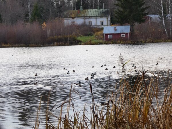 Onkohan lumihanhi muuttanut eteen päin, vai oliko vain niin huono tuuri, ettei sitä tänään löytynyt? Lumihanhipaikalla oli tänään paljon hanhia. Saattoi siellä olla lumihanhikin jossain, kun eihän sinne joka piiloon näe. Video: paljon on hanhia ja laulujoutsenia tänäänkin lumihanhipaikalla Video: tarkastellaan vielä vähän tarkemmin löytyisikö lumihanhi sittenkin, kun katselee vielä tarkemmin Tänään kävin toisen kerran paikalla ja silloin nousivat metsähanhet isona parvena ilmaan ja ensin niiden peltojen yllä kruisailivat ja lopulta lähtivät leopopaikkaansa kohden lentämään. Ne nousivat aika korkealle ilmaan. Silloinkaan en siitä parvesta huomannut, että siinä olisi lumihanhi ollut joukossa. Video: juuri nyt niiden piti sitten nousta lentoon Video: siellä ne nyt lentävät jo kilometrien päässä Rehevällä lintujärvellä oli nyt ilmeisesti satoja niitä itäisiä sinisorsia. Tietääkseni jopa sieltä baikal-järven luota jostain ovat nämä saattaneet tulla. Nuo harmaapäiset ovat jokavuotisia täällä. Ne ovat lennossakin muistaakseni hyvin erikoisen näköisiä - ihan eri muotoisiakin - ja siivellä on paljon harmaata? Helposti voisi niitä pitää omana lajina. Mahdollisesti lajista on olemassa tuollainen oranssi versio, jolla pohjavärinä on kuin oranssia väriä. Järvellä syntynyt nuori kilpikanakoiras oli hyvillä mielin paikalla. Se pärskytti vettä kiskoessaan kasvisekamelskasta itselleen ne osat jotka olivat sille ruokana mieleen.