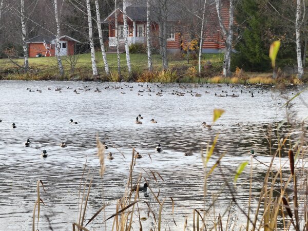 isompi kuva, joka aukeaa uuteen ikkunaan isompi kuva, joka aukeaa uuteen ikkunaan Video: paljon itäisiä sinisorsia Video: ja niitä ilmestyi vielä lisääkin Ruovikosta tuli yllättäen vielä ehkä sata lisää. Video: jotkut laulujoutsenparit voimistavat "avioliittoaan" terrorisoimalla toisia sopuisia laulujoutsenia Ehkä voi mainita lopuksi joitakin havaintoja, joita en ole huomannut silloin ilmoittaa, kun on ollut havaintopäivä. Kolme päivää sitten ison lintulahden yltä kuului ilmeisesti jopa suuren pulmusparven muuttoääntä. Parvi saattoi olla korkealla ilmassa, koska sitä ei pystynyt lintutornista huomaamaan. Toissapäivänä oli haarapääskysen pesäpaikalla jälleen pikkutikka ja kuului yksi taviokuurnan ääni. Taviokuurna saattoi olla uusi laji tälle vuodelle. Lumihanhipaikalla kuului tänään tietääkseni sitä ääntä, jota pulmusparvista joskus varsinkin isosta muuttoparvesta kuuluu. Sitä erikoista särinää. Olikohan siellä paikallisena pulmusparvi. Sitä ääntä ne pitävät joskus kun lentävät pellon yllä.