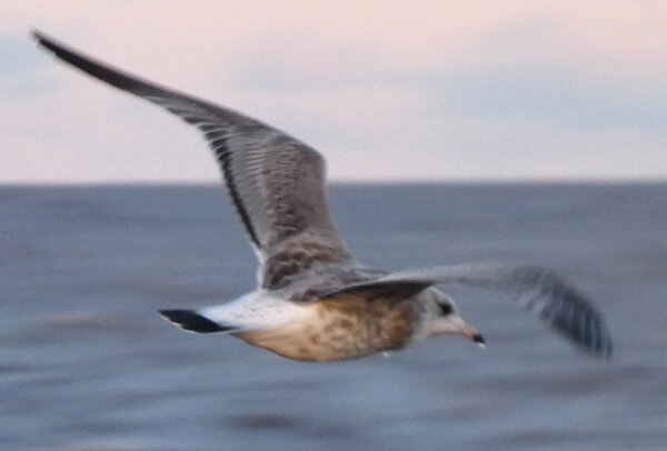 Arvelen, että tämä olisi larus brachyhynchus, short-billed gull. Ei ole toisella kalalokkilajilla tuollaista rintaa? Ja olemusta. Veikkaisin, että tämä jopa voisi olla maallemme uusi laji - jopa??![]()