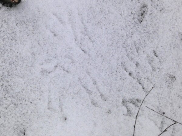 Arvelen, että nämä ovat pyrstötiaisen jälkiä.