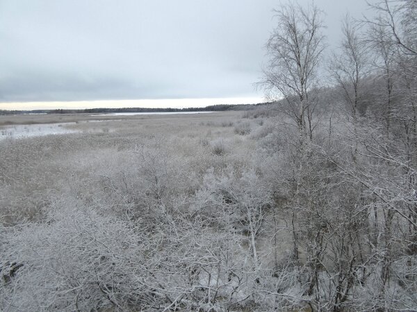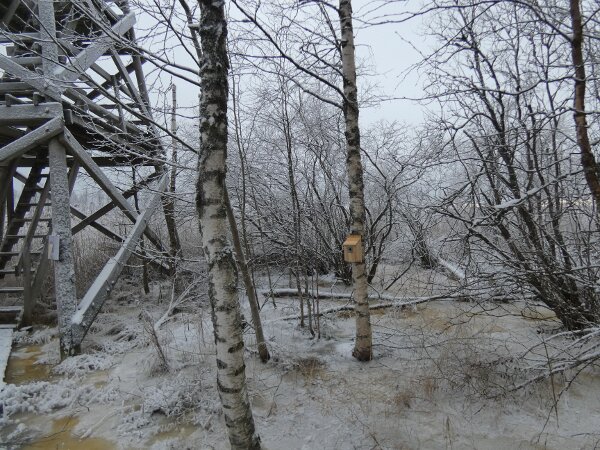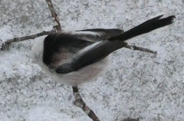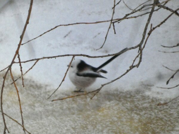 Kävin laittamassa linnunpöntön eiliselle pyrstötiaispaikalle eli sen haarapääskysen pesäpaikan luontopolun vanhan lintutornin luokse. Tuli aamulla mieleen, että siinä olisi hyvä paikka ja että siinä näkisi, että mitä siihen tulee pesimään ja sitten ensi talvena pöntön siivouskin sujuisi linturetkeilyn ohessa. Myöskin luontoretkeilijöille tulee mahdollisuus nähdä ehkäpä siinä kirjosieppo sitten kesällä? Heti kuusimetsään saapuessa oli siellä neljä pyrstötiaista. Mikä oli vähän erikoista, kun eihän pyrstötiaiset yleensä ole kuusimetsissä, jossa ei ole oikeastaan muuta kuin kuusia. Ja siellä lintutornin luonakin oli myös tänään pyrstötiaisparvi. Niitä oli varmasti seitsemän. Lisäksi parven mukana saapui kaksi hömötiaista, jotka puuhalivat keskenään. Niiden hömötiaisten luokse lennähti myös hippäiäinen. Hippiäinen oli myös kuusikossa. Siis mahdollinen selitys eiliselle oli myös, että se isompi parvi oli tämä seitsemän parvi ja ne neljä olivat ehkä tänään siellä kuusikossa. Kuka tietää - on muitakin selitysyrityksiä. Joka tapauksessa tänään oli 11 pyrstötiaista yhteensä. Siitä pöntöstä ajattelin myös, että kun juuri siinä paikassa on aiempina vuosina viihtynyt talven tuloon asti peukaloinen, niin se peukaloinen tykkäisi yöpyä suojaisessa pöntössä. Sen olisi helpompi olla kun saa olla suojaisessa paikassa. Ehkä pöntössä voisi jopa pesiäkin peukaloinen? Joskus olettaisin, että peukaloinen voi pesiä pöntössäkin. Hyvin harvoin.![]()