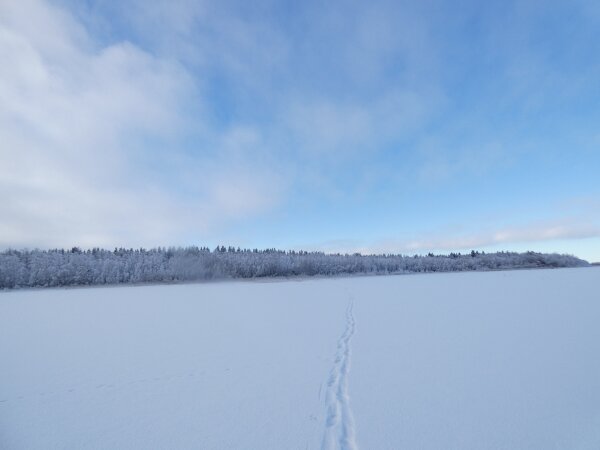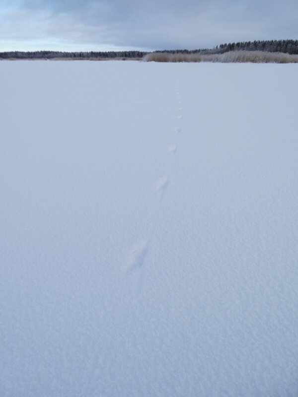 Minkki. Minkin jäljet ovat harvinaistuneet paljon? Lahdella oli paljon jälkiä. Nyt on yleensäkin paljon otuksien jälkiä näkyvillä lumella.