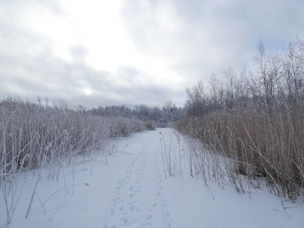 Nyt pääsee sellaisiin joihinkin paikkoihin, joihin ei tavallisina talvina pääse. On tavallista paljon vähemmän lunta. Tänään kävin tutkimassa ison lintulahden ruovikkoviidakkoa. Siellä voisi tietenkin kesällä seikkailla, jos omistaisi kanootin tai jonkin pienen veneen. Kerran kesällä kävin siellä päin kävelemässä ja siellä oli useita kurkipareja ehkäpä poikastensa kanssa. Toisella kertaa kävin kuuntelemassa, niin siellä lauloi kaksi luhtakanaa. Ei sinne oikein varsinaiselle pikkulahdelle pääse lähelle, jos ei ole venettä - tai sitten näin talvella pääsee ainakin näkemään, että minkälaista siellä on? Pikkutikka ilmeisesti äänteli sen ison lintulahden lintutornin lähellä. Niin arvelen. Sellaista huomioääntä, vaimeampaa ja korkeampaa kuin käpytikalla. Valkoselkätikan ääni on vähän erilaista.![]()