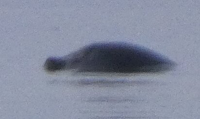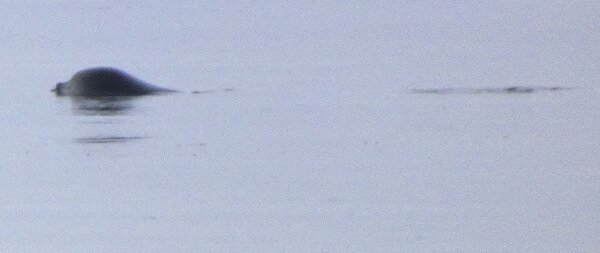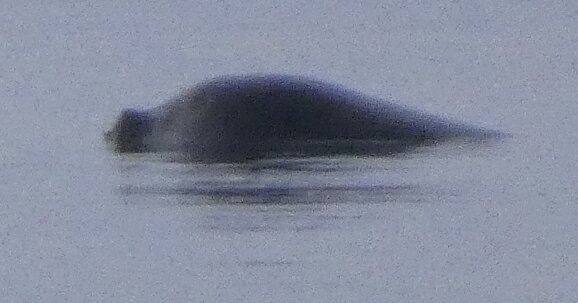 Tuossa asennossahan norppa voi näyttää kauempaa ihan vesilinnulta? Voi pikaisesti vilkaisten katsoa, että hei vesilintu. Ja sitten kun menee kaukoputken luokse ja etsii, ja etsii, kun norppa onkin sukeltanut ja pystyy ollemaan kymmenen ja enemmänkin minuuttia veden alla. "vesilintu" onkin tehnyt katoamistempun? Mutta eihän se alunperinkään ollut vesilintu, vaan norppa.