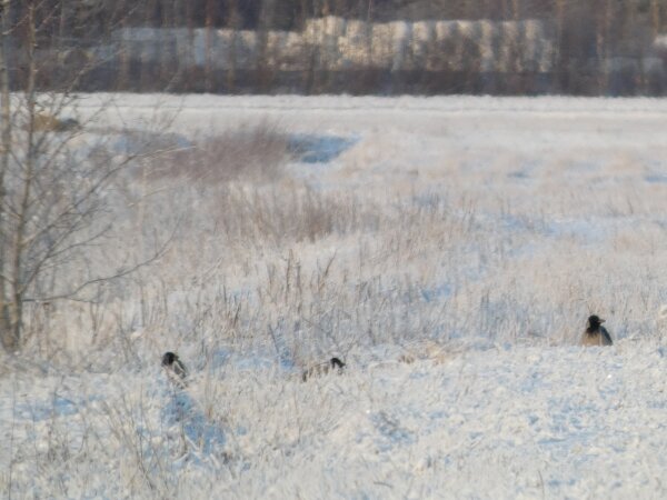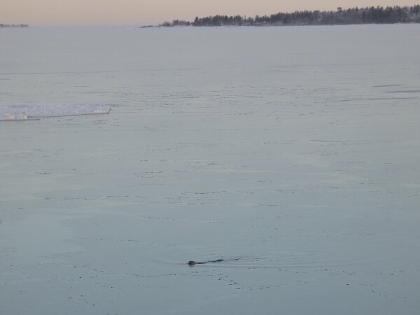 Saukko ja norppakin oli tänään pitkän niemen kärjessä. Siellä on ehkä ollut enempikin sulaa pari päivää sitten - sen näköistä oli. Tuuli vaikuttaa paljon siihen, kuinka paljon on sulaa vettä. Saukko oli ihan lähellä, kun kuvasin tätä videota. Video: saukko nauttii suomen talvesta? Se yrittää ehkäpä irrottaa turkistaan jääpisaroita heti noustuaan vedestä, että sen turkki pysyisi kalastuskelpoisena. Saukko sai kalan. Pyypari oli korkealla koivussa vierekkäin syömässä. Niiden hiljainen yhteysääni on sellainen kuin dyk dyk dyk. Ne näyttivät siellä korkealla ihan kuin joltain pieniltä töpöiltä kyyhkyiltä alta päin katsoen. Ne olivat vierekkäin syömässä siellä korkealla. Nyt oli lintutornin luona jälleen ehkäpä se seitsemän pyrstötiaisen parvi. Mutta lisäksi tänään oli myös puukiipijälintu sekä töyhtötiainen - äänten perusteella. Hippiäinen näkyi edelleen joukossa. Kävin laittamassa linnunpöntön. Yritin nähdä tuulihaukan peltoaukeilla. Kun sieltä on jo ilmeisesti monta talvihavaintoa.![]()
