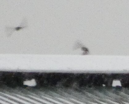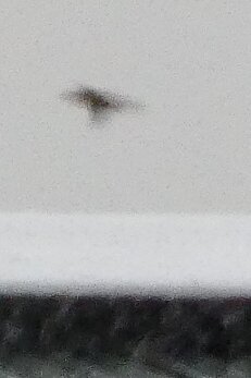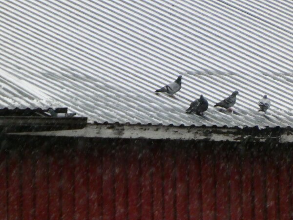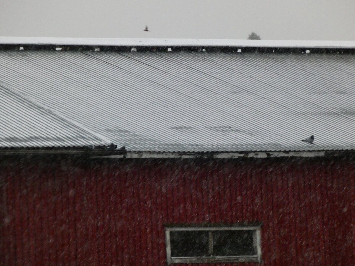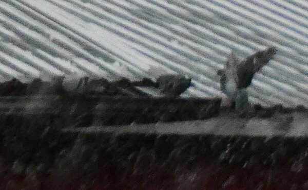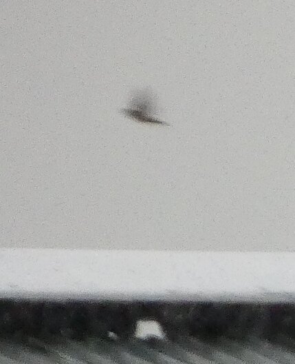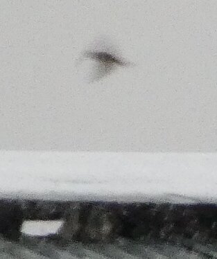Siellä kesykyyhkyjen navettapesimäpaikalla, ilmeisestikin, oli nähty eilen neljä kottaraista. Lähdin niitä bongaamaan. Siinä kyyhkyt käyttivät vesiränniä ammeenaan ja niitä kuvatessa tuli kuin sattumalta ilmeisesti kottaraisia kuviin? Ne ilmestyivät se navetan katon takaa sen ylle hetkeksi lentäen. Kävin sitten myös siellä tiellä, josta jotenkin näkee navetan taakse. Tänään oli jo lunta pelloilla. Arvaan, että kyseiset kottaraiset kenties viettävät aikaansa siellä pihattonavetan sisällä? Arvaten se voi olla suuri tila, jossa on aukkoja katon harjalla, kuten kuvistakin voi arvailla.![]()