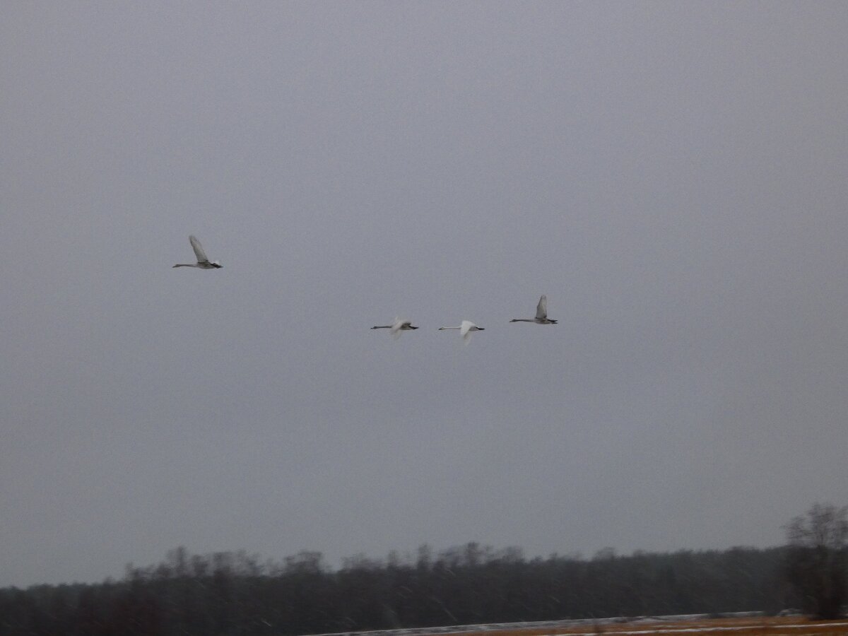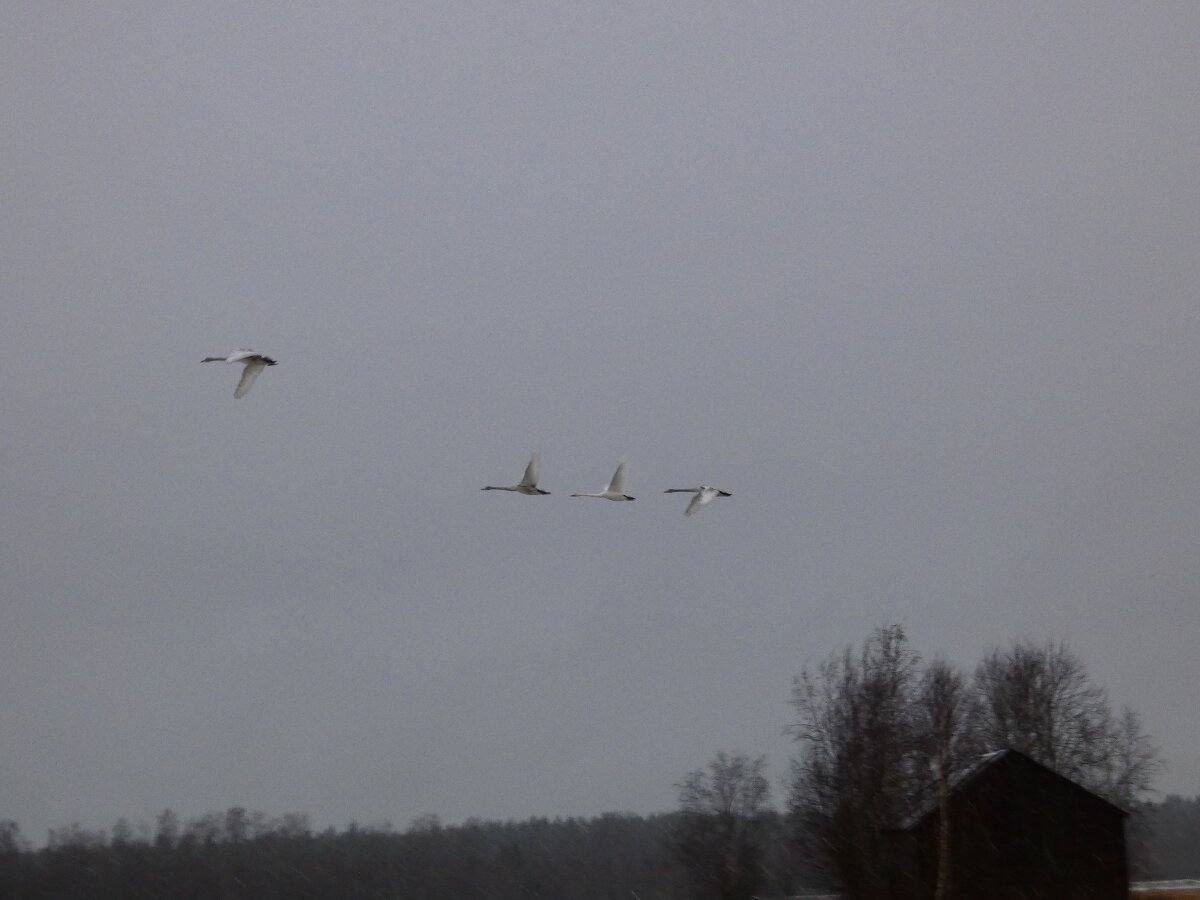Äänite: mikä laji? Paikanpäällä nopeassa tilanteessa määritin, että hippiäinen ruovikossa. Oliko määritys oikein? Äänite: sinitiainen, pieni tiaisparvi Tiaisparven kuin kanssa oli vitivalkoinen jänis. Video: talvisia naakkoja - näkyykö kottaraisia niiden joukossa Kuten usein keväisin. Video: kyyhkyjen amme? Video: pitkäkaulaisia laulujoutsenlintuja pesue hanhipelloilla Ne halusivat välttämättä lähteä lentoon. Sen takia ne nyökyttelevät. Se tarkoittaa, että hei lähdetään lentoon. Ne näyttivätkin siltä, että olivat juuri tulleet paikalle muuttaen ja sen vuoksi olivatkin valmiita etenemään etelään uudelleen. Video: pulleita kauriita Nämä kauriit voivat oikein hyvin?