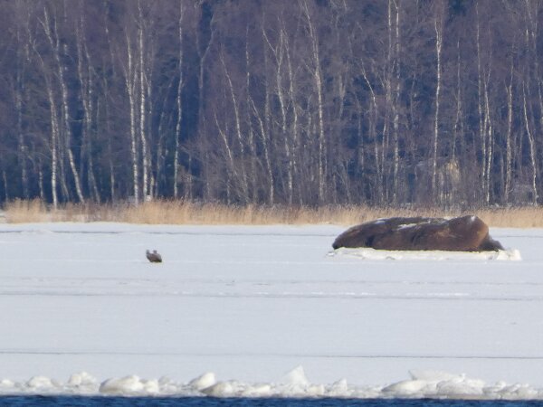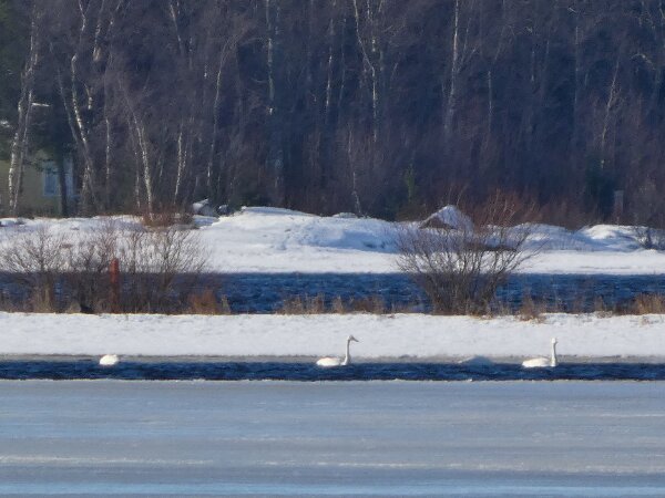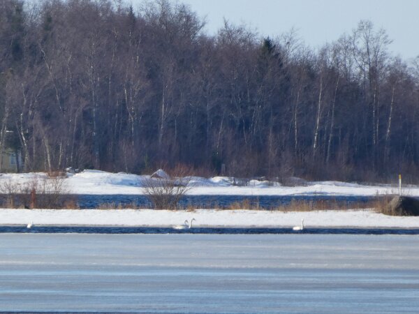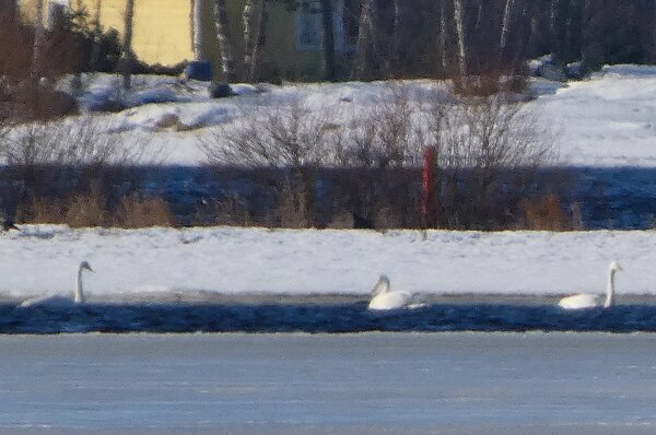 Viime päivinä kevät on mennyt joka päivä pikkuisen eteenpäin? Laulujoutsenten lukumäärä sellusulalla kasvoi taas yhdellä. Nyt siellä oli kaksi paria. Se yksinäinen koiras oli jatkanut lentoaan reviirille asti? Kalasatamassa oli joku järjestetty kevätulkoilupäivä? Sieltä kalasatamasta näki pikkusaarelle, jossa oli jo harmaalokkeja reviireillään. Ja että laivaväylä oli kilometrien pituudelta sulana. Sieltä sulalta ne lokitkin silloin tulivat sinne sellusulallekkin?![]()
